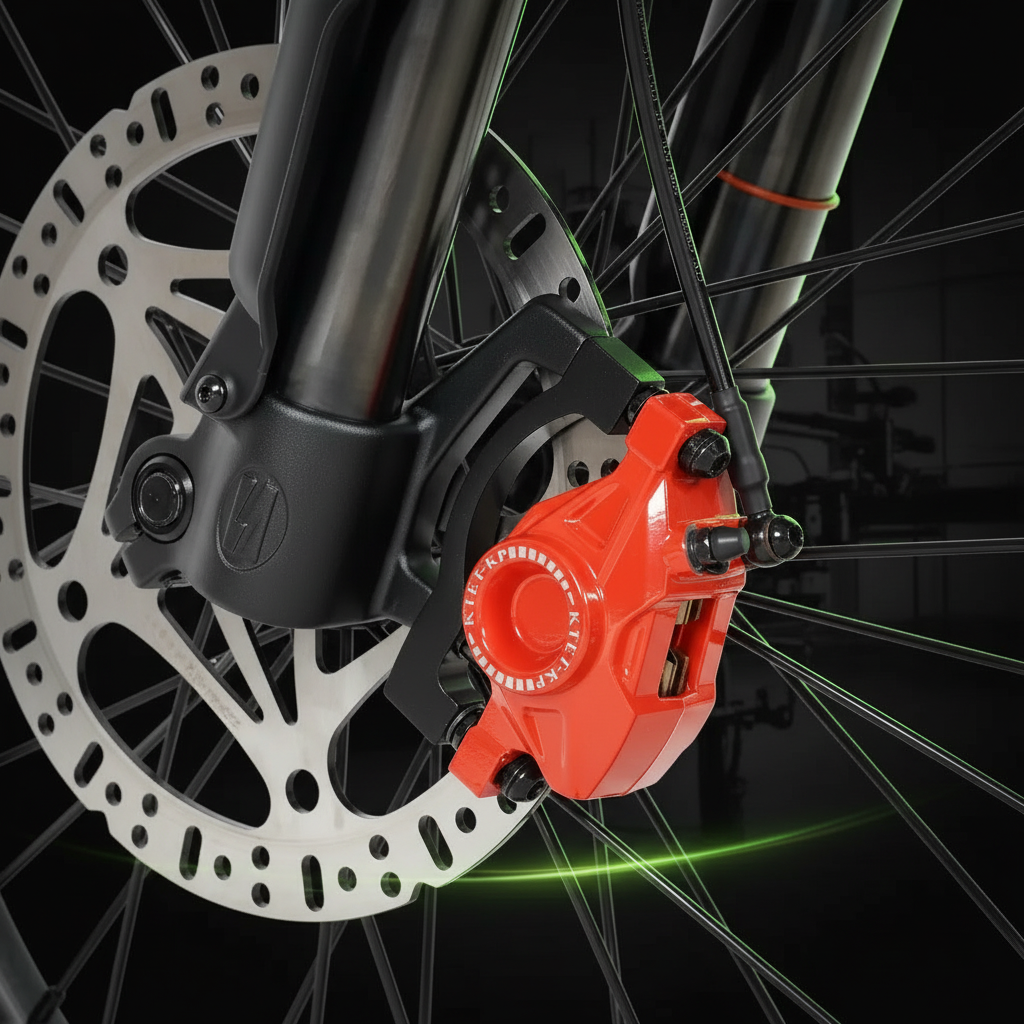 Equipped with a rear brake light that flashes red upon braking, as well as a front and rear hydraulic braking system featuring 220mm brake discs.