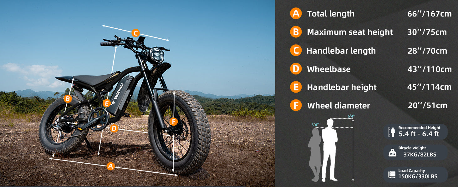 The recommended rider height for BG-X is 4'11" ~ 6'3"; The total payload capacity of Ranger S is 330 lbs (not including the bike weight).