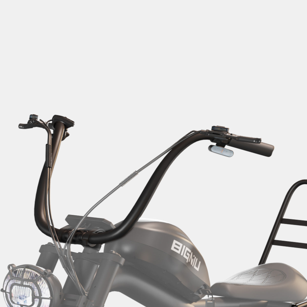 [ Ape Hangers Design ] Elevate your ride with the iconic Ape Hangers handlebar design, blending bold style and rebellious attitude to turn heads on every street. Designed for comfort, the Ape Hangers offer a natural arm extension posture, making short trips and urban commutes effortless and enjoyable. It’s the perfect fusion of individuality and practicality.